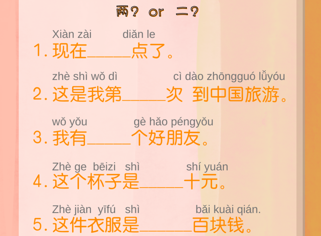 HSK Level 4(A) သင်ရိုးကို ဝယ်ယူနိုင်ပါပြီ အနီးဆုံးတန်းခွဲများအချိန်ဇယား https://youtu.be/h3JiCcXFdQw 二 èr ဒုတိယ ဒုတိယမြောက်၊ နံပါတ်စဥ်၊ ဆယ်ဂဏန်းရှေ့နောက် မှာ သုံးပါတယ်။ ဥပမာ 一二三 Yī èr sān တစ်နှစ်သုံး 十二